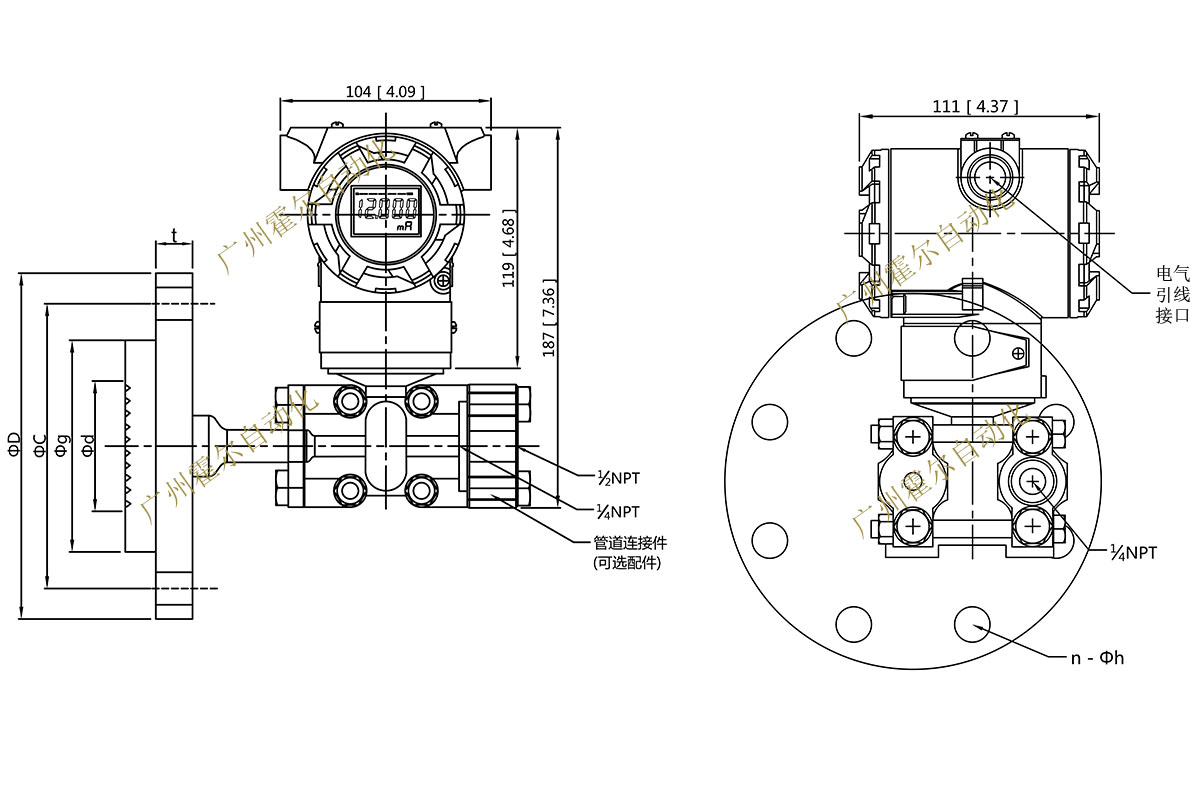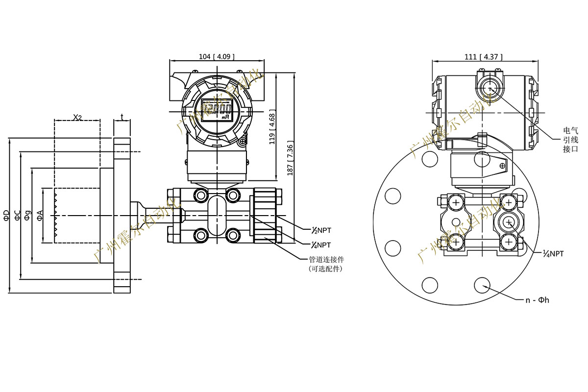 法兰尺寸:100mm,DN100[4inch] 单位:mm[inch]