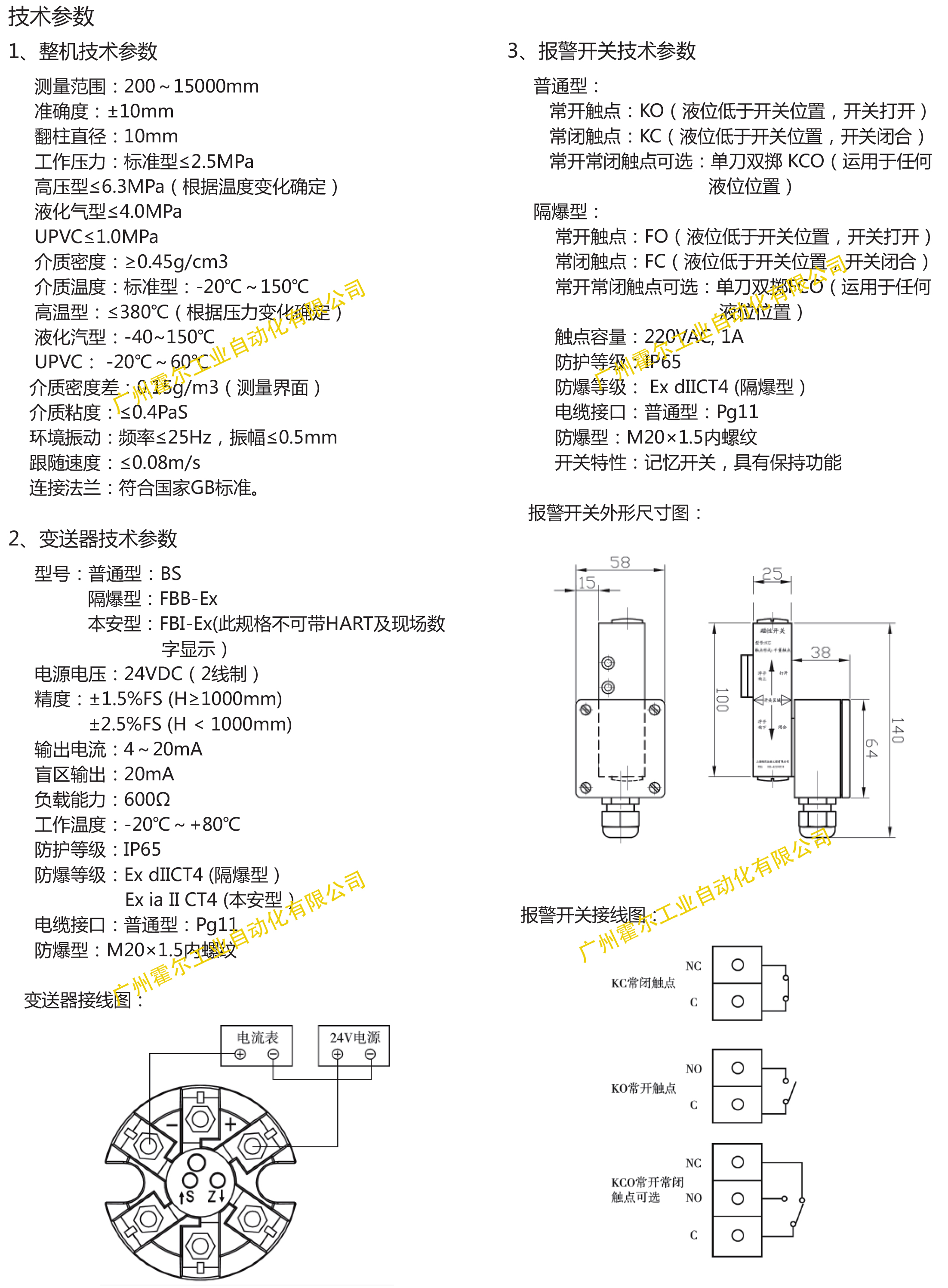 常开常闭触点可选:单刀双掷 KCO(运用于任何液位位置)